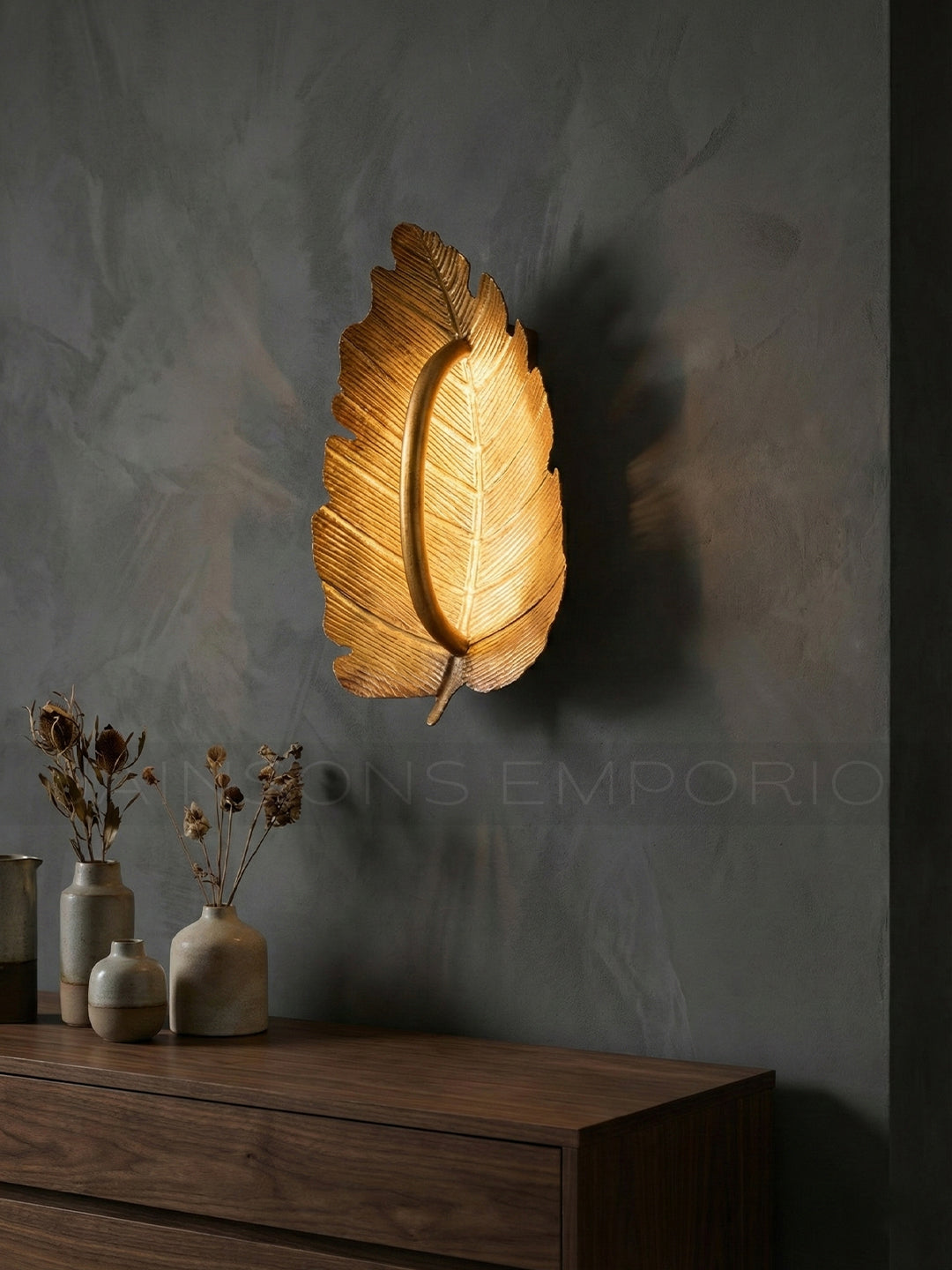 Bringing the outdoors in with a luxurious twist, this sconce features a textured botanical design where light washes over the metallic surface to highlight every delicate vein.