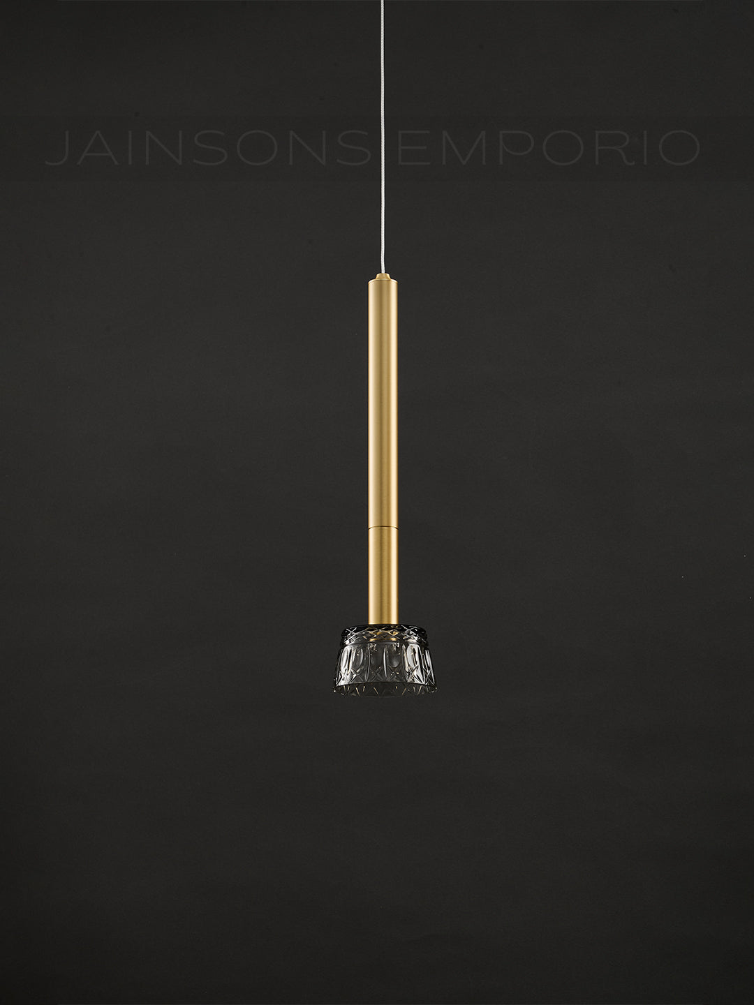 Exuding a moody sophistication, the Aurum Facet-Smoky pairs the timeless elegance of a brushed gold cylinder with a captivating, smoke-tinted crystal tip. The faceted glass diffuses light into a warm, subdued glow, adding a layer of mystery and modern luxury to intimate spaces or bedside arrangements.