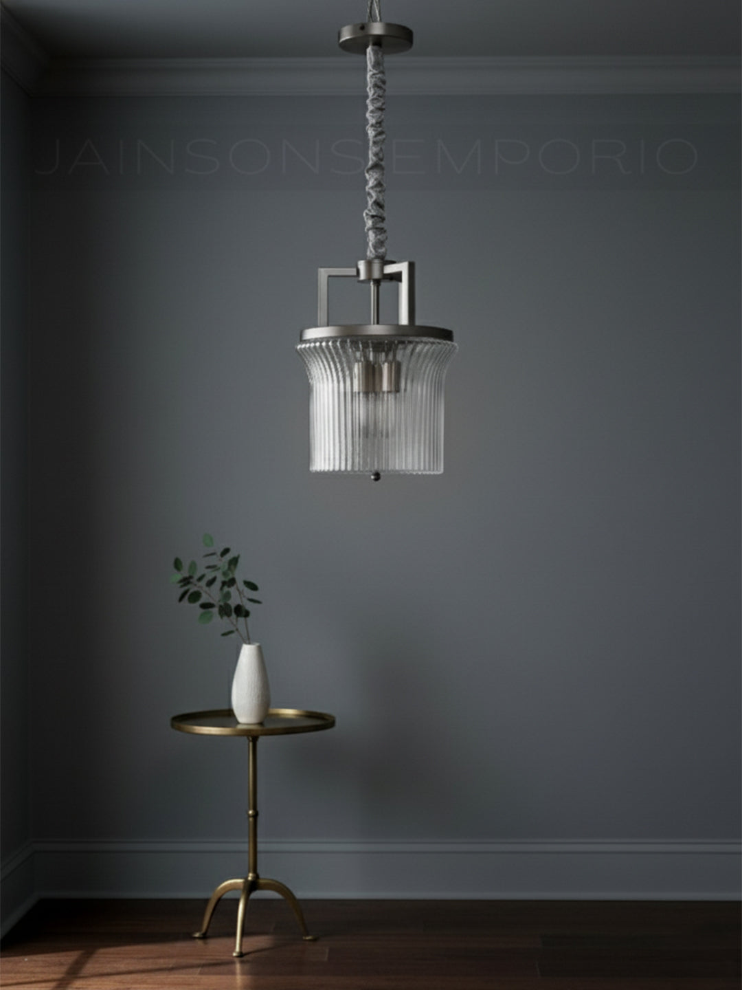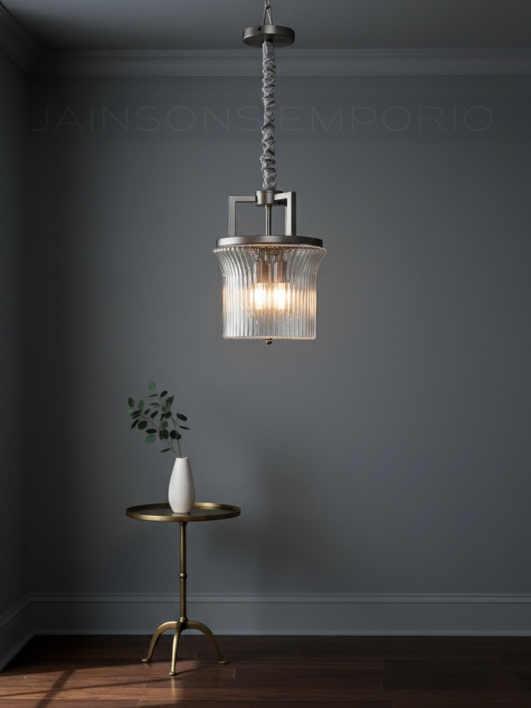 Blending industrial ruggedness with refined elegance, the Harrison features a thick, vertically ribbed glass shade suspended from a structured dark metal yoke. The fluted glass gently diffuses the light, creating a shimmering, textured glow that adds depth to kitchen islands or hallways.