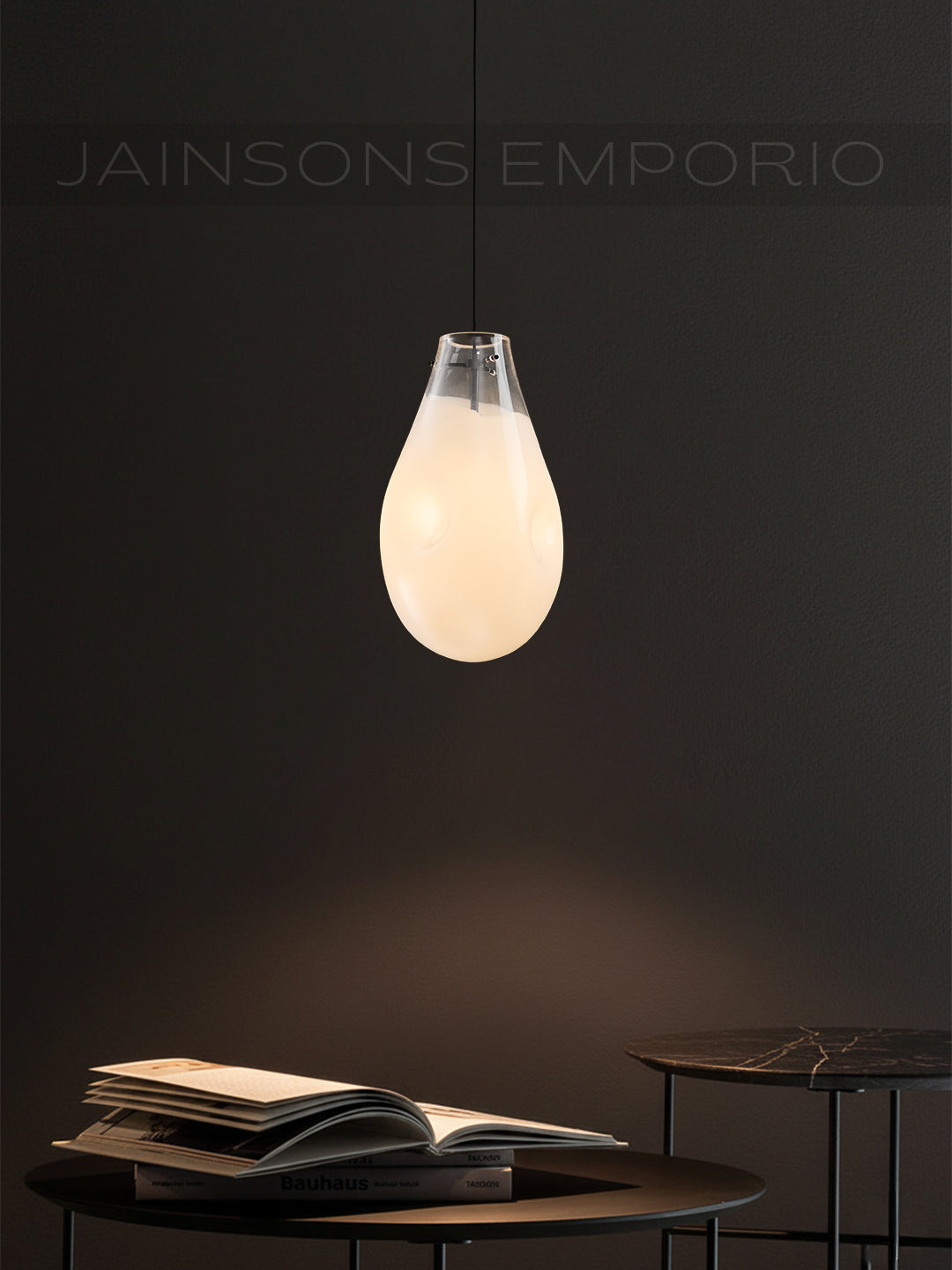 The Fluid Orb captures the essence of molten glass frozen in time. Its bulbous silhouette is interrupted by smooth, organic depressions that play with light and shadow, offering a modern, tactile twist on the traditional glass pendant.