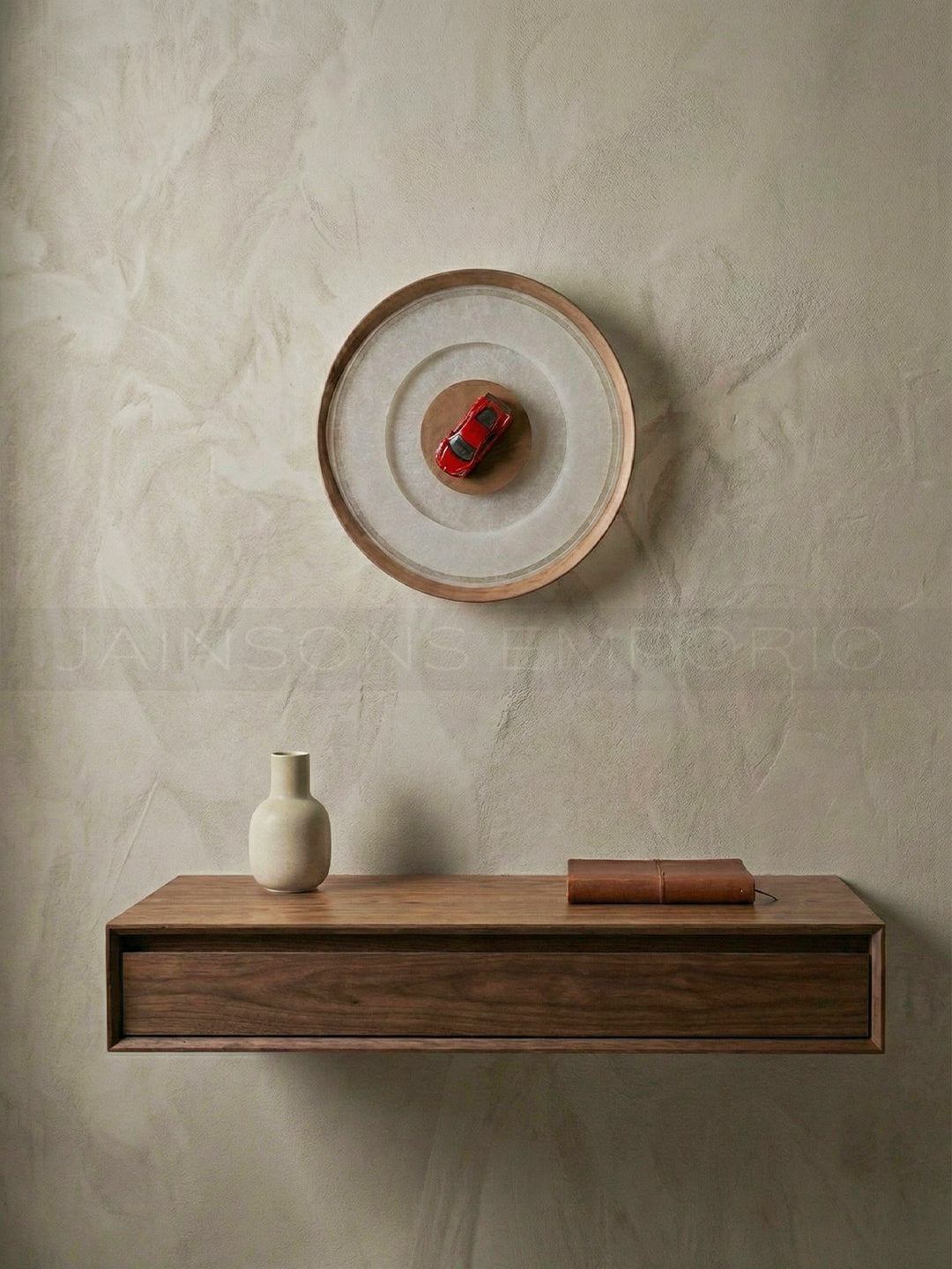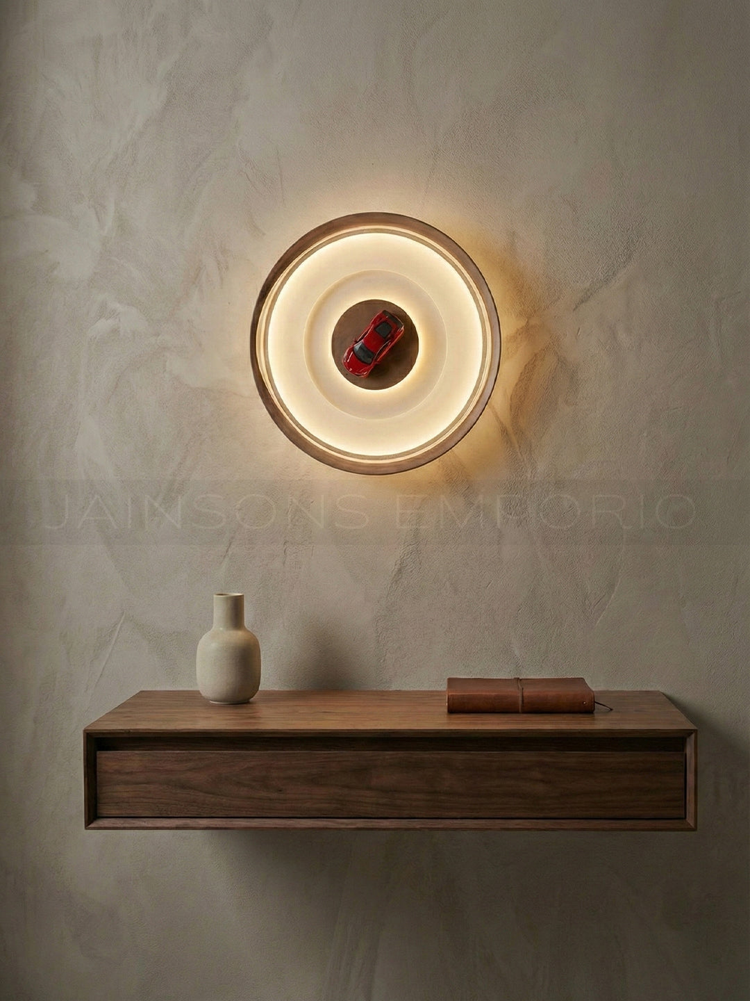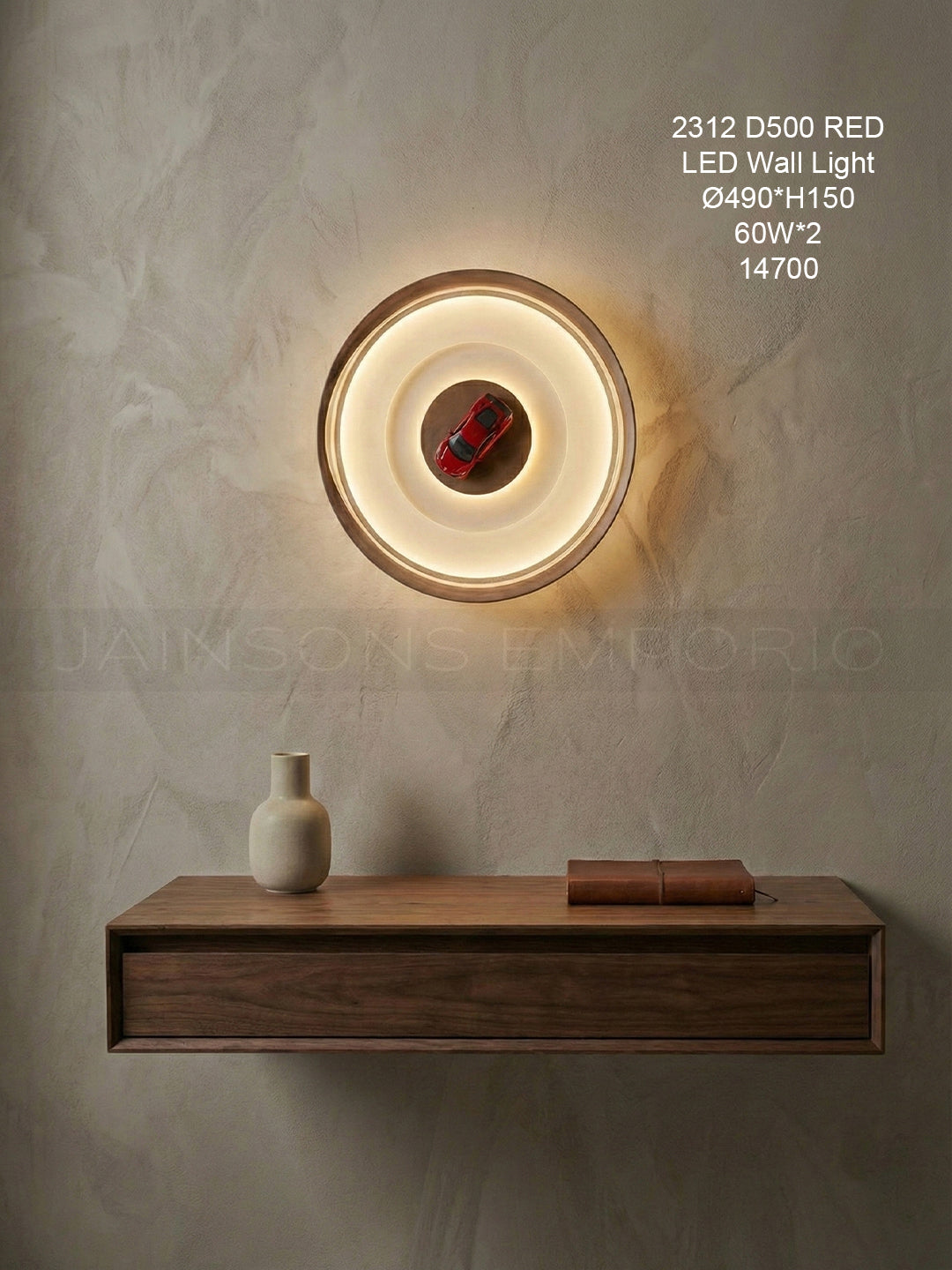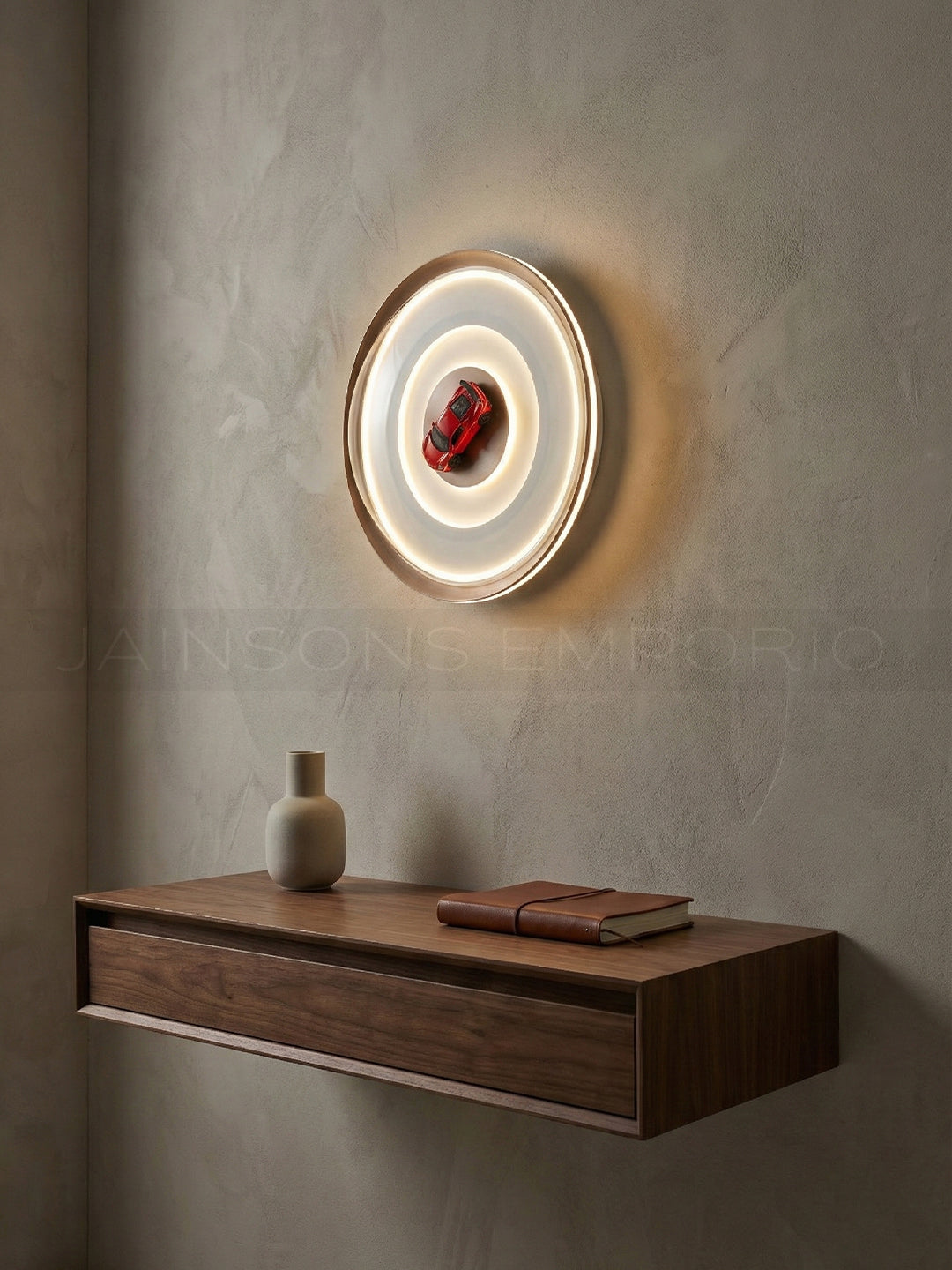 Ignite the room with this dynamic wall light. Featuring a minimal circular design that acts as a spotlight, it puts the focus squarely on the vibrant red racer at its heart.